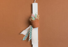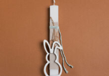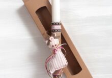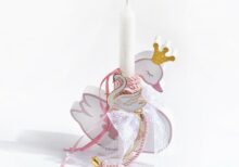 Πασχαλινή λαμπάδα με θέμα μπαλαρίνα. Το πασχαλινό δωράκι περιλαμβάνει: Ξύλινο διακοσμητικό πόρτας: 15×41 cm |