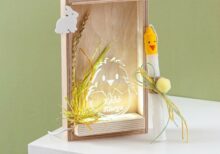 Πασχαλινή λαμπάδα σε καδράκι με led φωτισμό με θέμα το κοτοπουλάκι. Η λαμπάδα είναι περιλαμβάνει α) ένα κοτοπουλάκι που βγαίνει μέσα από το αυγό από διάφανο plexiglass β) ζωγραφισμένη λαμπάδα σε κίτρινες αποχρώσεις που απεικονίζει ένα κοτοπουλάκι.