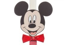 Πασχαλινή λαμπάδα με θέμα τον Mickey. H λαμπάδα περιλαμβάνει το πρόσωπο του Mickey με ξύλινο παπιγιόν σε κόκκινο χρώμα.