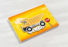 Βιβλίο ευχών με εξώφυλλο από χοντρό χαρτόνι σε κίτρινο χρώμα και διακοσμημένο με κοπτικό φορτηγό.