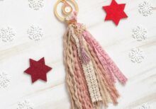 Γούρι κρεμαστό με μάτι χρυσό-ροζ σε στρογγυλό πλαίσιο. Το γούρι ολοκληρώνει δαντέλα εκρού,κορδόνια σε αποχρώσεις καφέ και σάπιο μήλο καθώς και κορδονάκι με κρόσια ροζ |