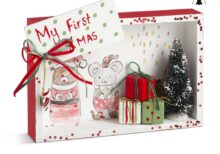 Χριστουγεννιάτικο ξύλινο διακοσμητικό παραλληλόγραμμο καδράκι My First Xmas σε λευκό χρώμα διακοσμημένο με κόκκινα αστεράκια glitter.Στο εσωτερικό του είναι ζωγραφισμένη παράσταση και διακοσμημένη με δωράκια και Χριστουγεννιάτικο δέντρο .