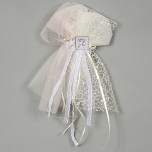 Μπρανς Βάπτισης σε Λευκό Χρώμα με Δαντέλα, Χρυσό Κύκλο και Τριαντάφυλλο
