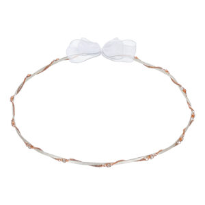 Χειροποίητα Επάργυρα και Επιπλατινωμένα Ασημί Στέφανα Γάμου με Ροζ Χρυσή Αλυσίδα και Στρας