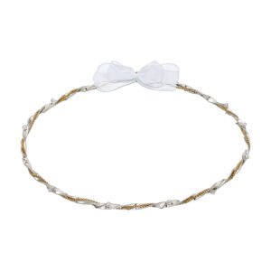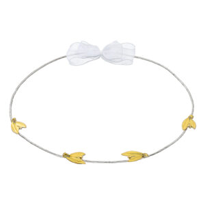 Χειροποίητα Επάργυρα και Επιπλατινωμένα Ασημί Στέφανα Γάμου με Χρυσό Κορδόνι