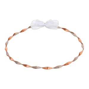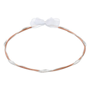 Χειροποίητα Επάργυρα και Επιπλατινωμένα Ροζ Χρυσά Στέφανα Γάμου με Ασημί Κορδέλα