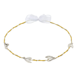Χειροποίητα Επάργυρα και Επιπλατινωμένα Χρυσά Στέφανα Γάμου με Ασημί Κορδέλα