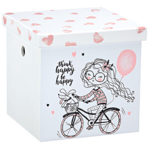 Κουτί Βάπτισης Κύβος με Θέμα Girl on a Bike