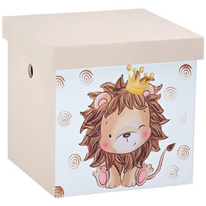 Κουτί Βάπτισης Κύβος με Θέμα Λιονταράκι