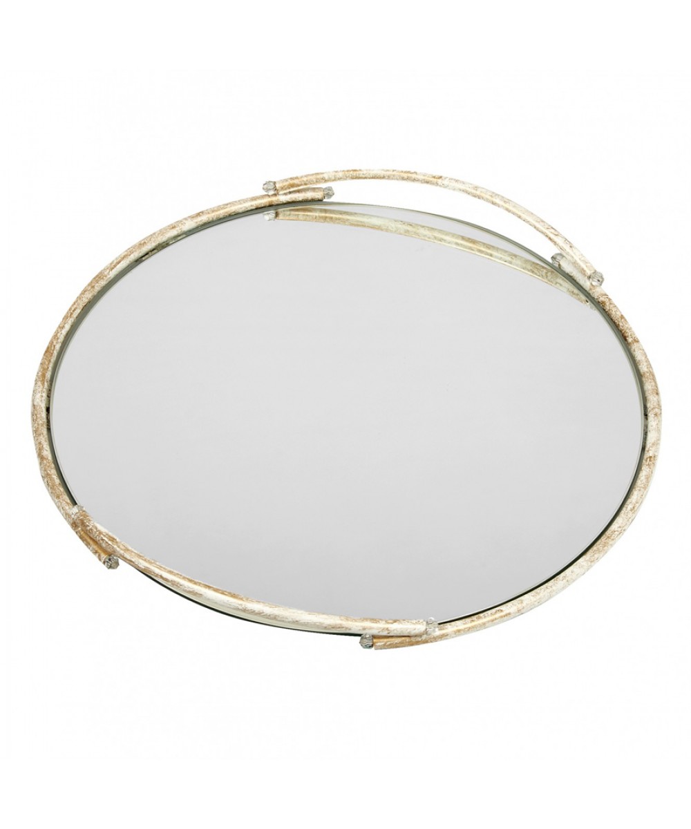 Ανοξείδωτος Στρογγυλός Δίσκος Με Καθρέπτη – Εκρού Με Χρυσή Πατίνα