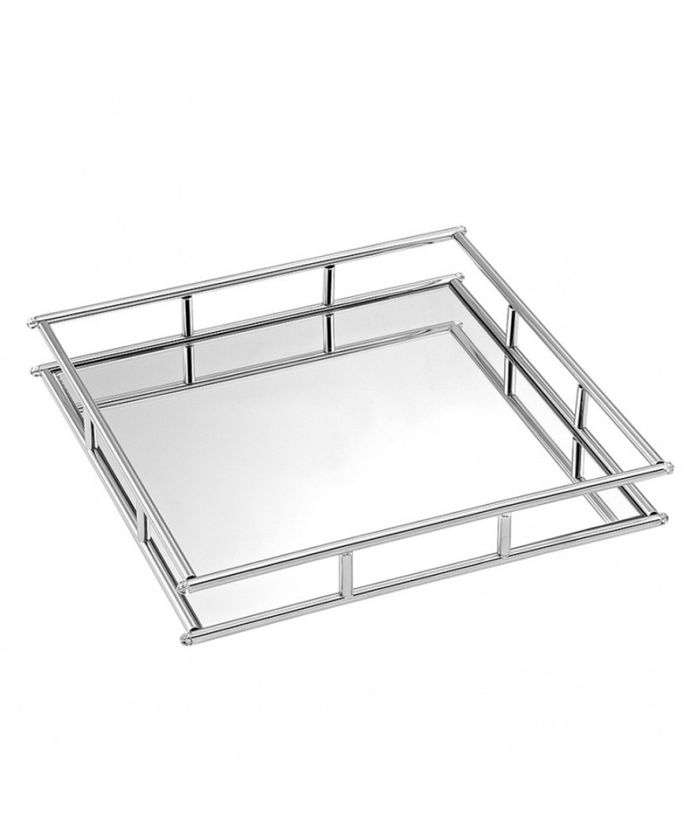 Ανοξείδωτος Τετράγωνος Δίσκος Με Καθρέπτη – Ασημί