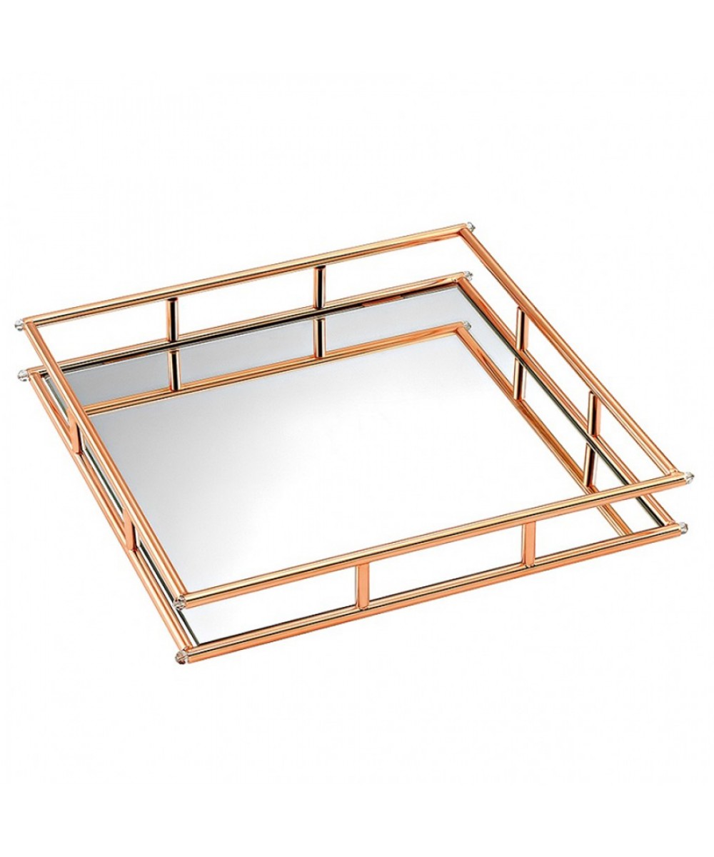 Ανοξείδωτος Τετράγωνος Δίσκος Με Καθρέπτη – Ροζ Χρυσό