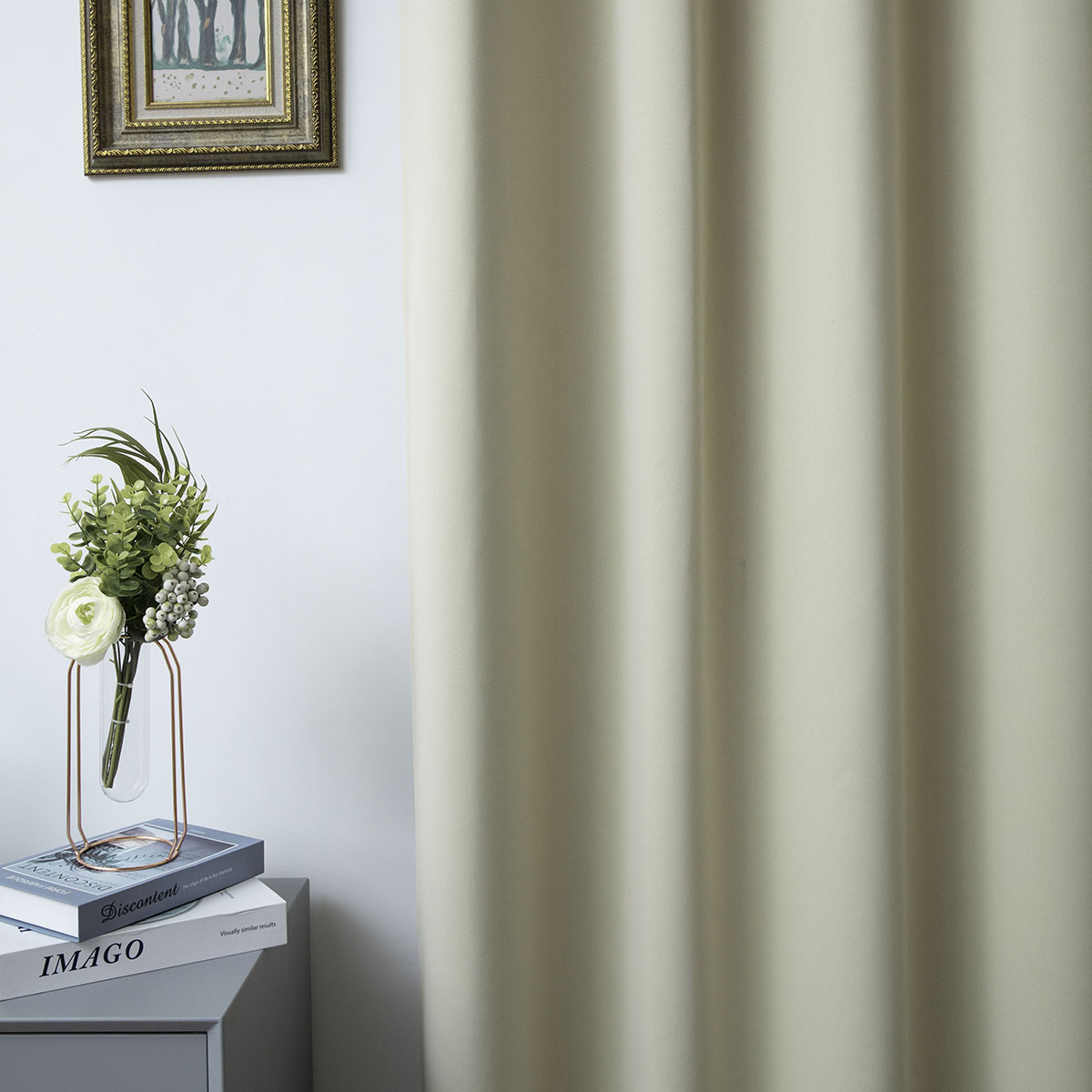 Κουρτίνα εσωτερικού χώρου, μονόχρωμη σε μπεζ απόχρωση. Κατασκευασμένη από 100% polyester και ενσωματωμένα τρουκς για εύκολη τοποθέτηση. Το ύφασμα είναι blackout. Διακοσμήστε την σε όποιο χώρο του σπιτιού σας επιθυμείτε και δημιουργήστε ένα ξεχωριστό στυλ.
