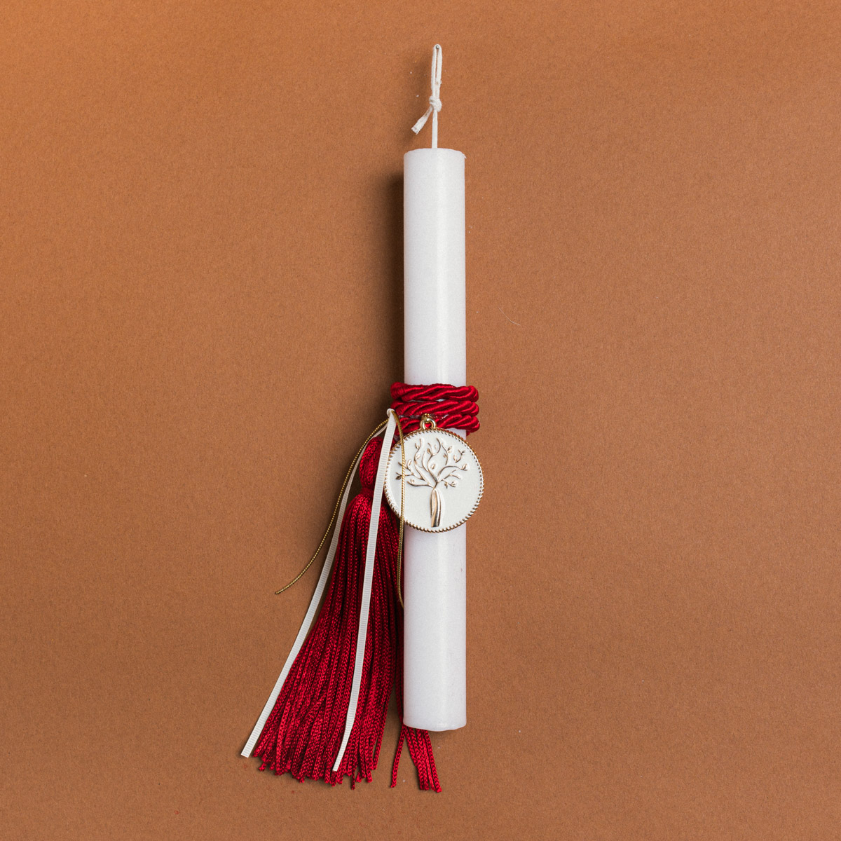 Beauty Home ΛΑΜΠΑΔΑ 33cm ΚΟΚΚΙΝΗ ΦΟΥΝΤΑ ΚΑΙ ΔΕΝΤΡΟ ΖΩΗΣ ΛΕΥΚΟ