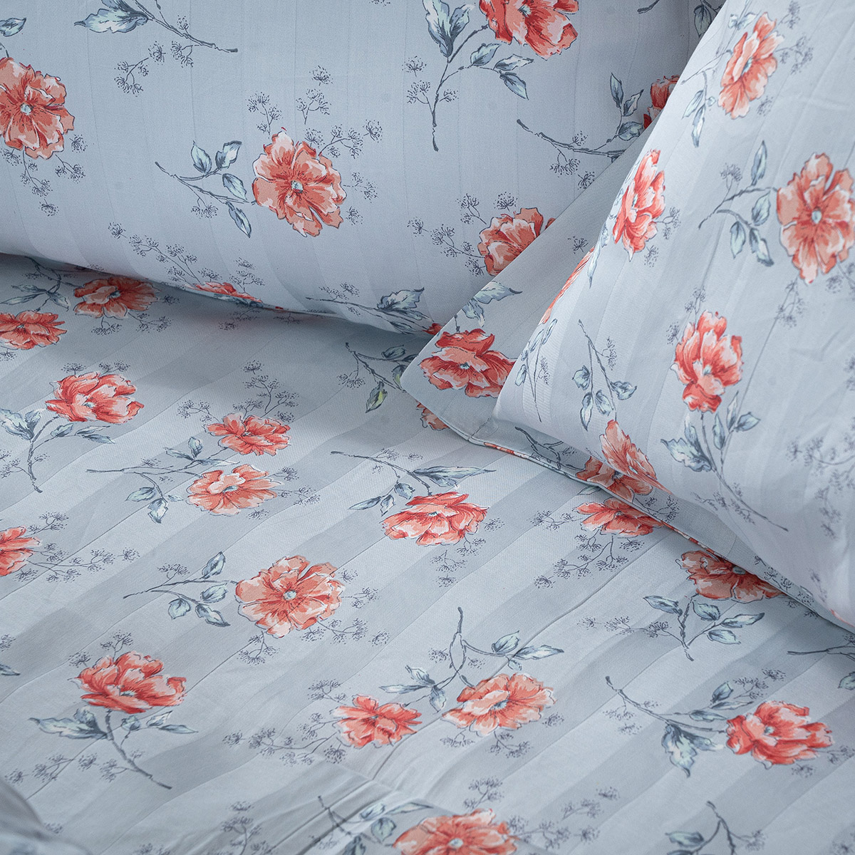 Κουβερλί 300TC Βαμβακοσατέν Ριγέ με Λουλούδια – Πολυτέλεια & Απόλυτη Άνεση