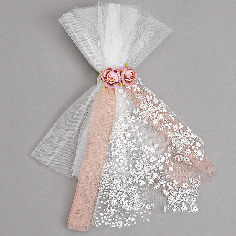 Μπρανς Βάπτισης σε Ροζ και Λευκό Χρώμα με Δαντέλα και Ροζ Τριαντάφυλλα