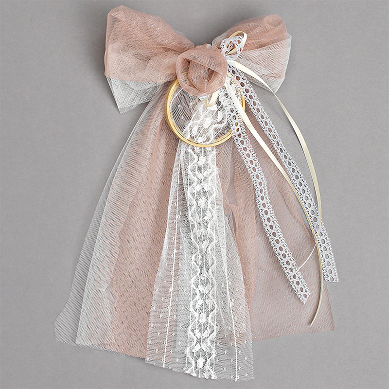 Μπρανς Βάπτισης σε Ροζ και Λευκό Χρώμα με Δαντέλα και Χρυσό Κύκλο