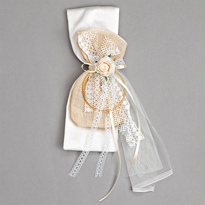 Μπρανς Βάπτισης σε Λευκό Χρώμα με Δαντέλα, Χρυσό Κύκλο και Τριαντάφυλλο