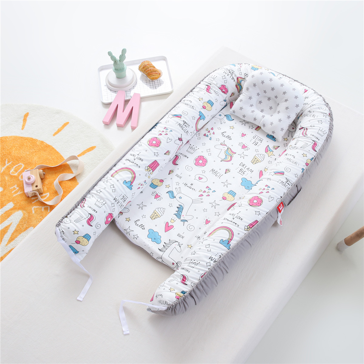 Η Beauty home θέλοντας να ικανοποιήσει και τις ανάγκες των λιλιπούτιων φίλων της μεγαλώνει την γκάμα της και σας παρουσιάζει τη νέα συλλογή της από τις βρεφικές φωλιές. Φωλιές μωρού με μαξιλαράκι κατασκευασμένες από 100% βαμβακερό αντιαλεργικό ύφασμα και γέμιση 100% πολυεστερική σιλικονούχα βάτα. Είναι μαλακά, πολύ ανθεκτικά και άνετα. Μπορούν να τα τοποθετήσετε στην κούνια του μωρού , στο λίκνο, δίπλα σας στο κρεβάτι σας ακόμα και στις βόλτες σας. Αγκαλιάζουν το μωρό σας δημιουργώντας έτσι την αίσθηση της ασφάλειας και της άνεσης και της ζεστασιάς!!
