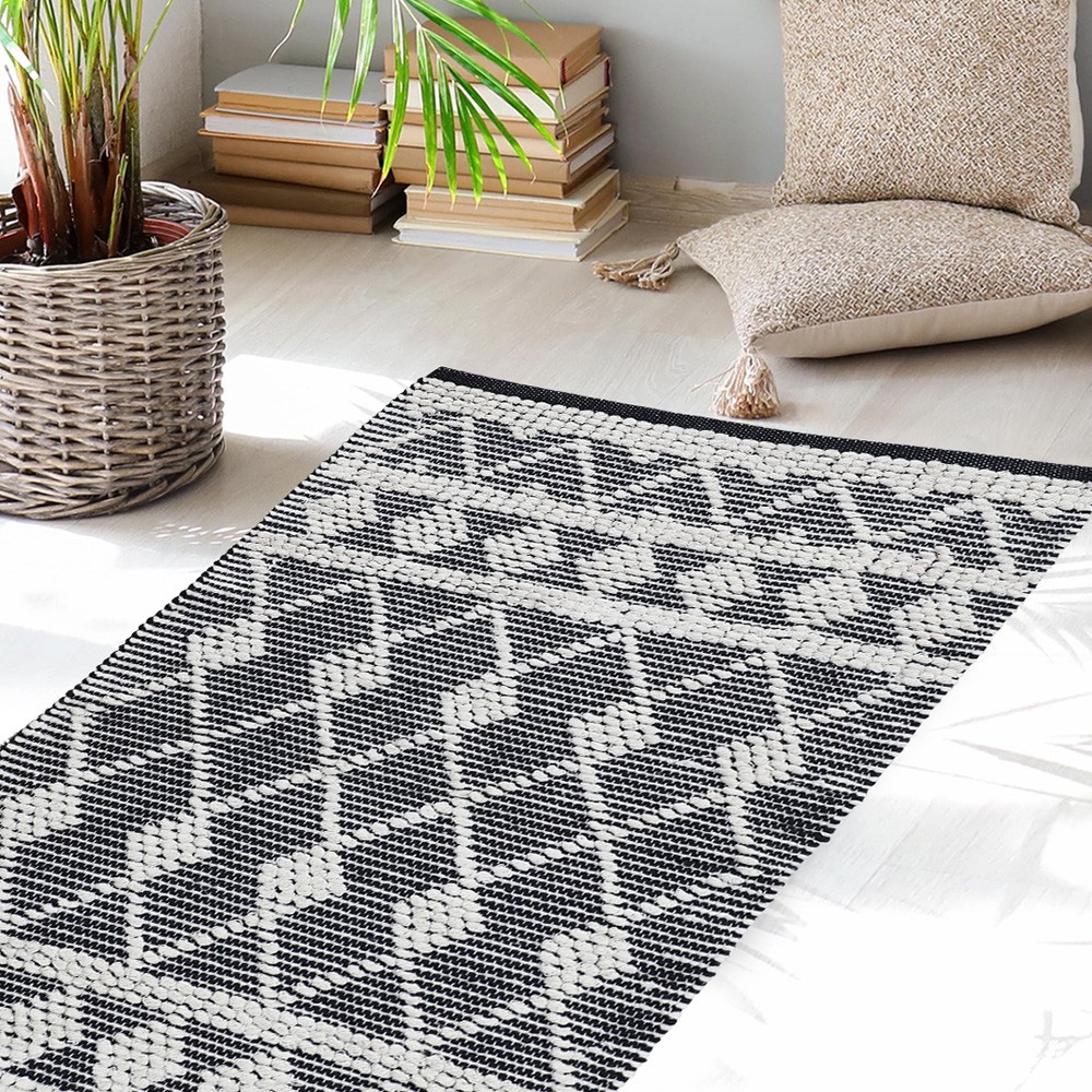 Χαλί διαδρόμου Oddie με γεωμετρικό σχέδιο σε διάσταση 60×120. Είναι κατασκευασμένο από 100% δέρμα βαμβάκι, έχει βάρος 1500 gsm και είναι ιδανικό να διακοσμήσει το σαλόνι, το διάδρομο ή την κουζίνα σας όλο το χρόνο.