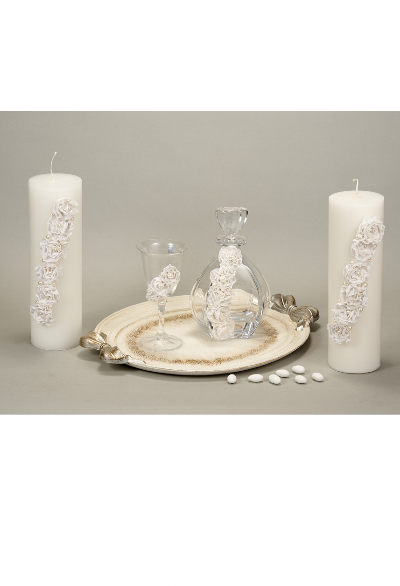 Σετ γάμου δίσκος καράφα και ποτήρι κρασιού