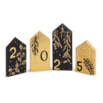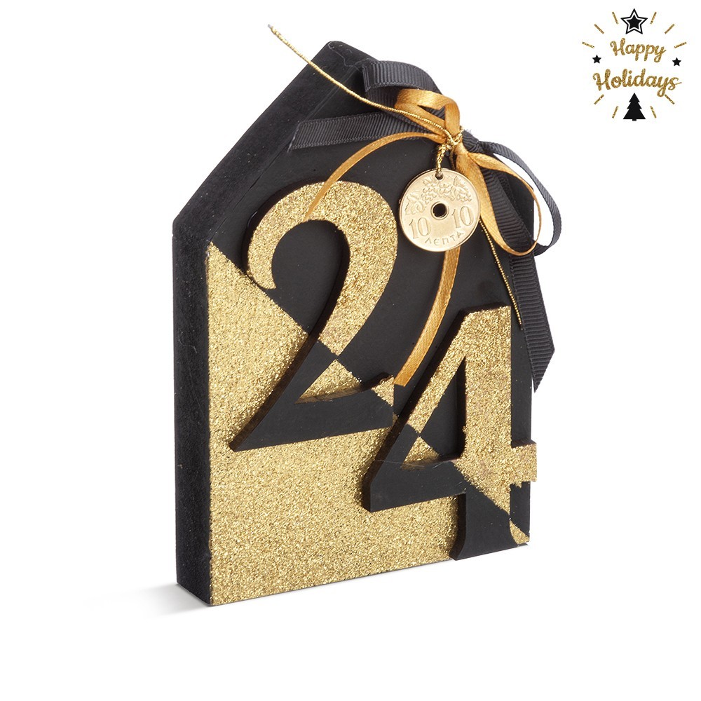 Χριστουγεννιάτικη ξύλινη ζωγραφιστή σύνθεση με λουλούδια σε μαύρο-χρυσό glitter χρώμα. Περιλαμβάνει 4 σπιτάκια σε διαφορετικές διαστάσεις.