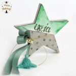 Χριστουγεννιάτικο διακοσμητικό αστέρι από ξύλο και τσιμέντο με την φράση Υγεία σε γκρι – πράσινες αποχρώσεις.
