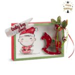 Χριστουγεννιάτικο ξύλινο διακοσμητικό παραλληλόγραμμο καδράκι Βaby boy 1st Xmas σε λευκό και πράσινο χρώμα.Στο εσωτερικό του είναι ζωγραφισμένη παράσταση και διακοσμημένη με ξύλινο αλογάκι.