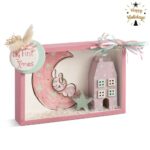 Χριστουγεννιάτικο ξύλινο διακοσμητικό παραλληλόγραμμο καδράκι σε λευκό και σιελ χρώμα.Στο εσωτερικό του είναι ζωγραφισμένη παράσταση με φεγγάρι και διακοσμημένη με σπιτάκι.