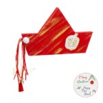 Χριστουγεννιάτικο ξύλινο διακοσμητικό καράβι σε κόκκινες & χρυσές glitter αποχρώσεις.