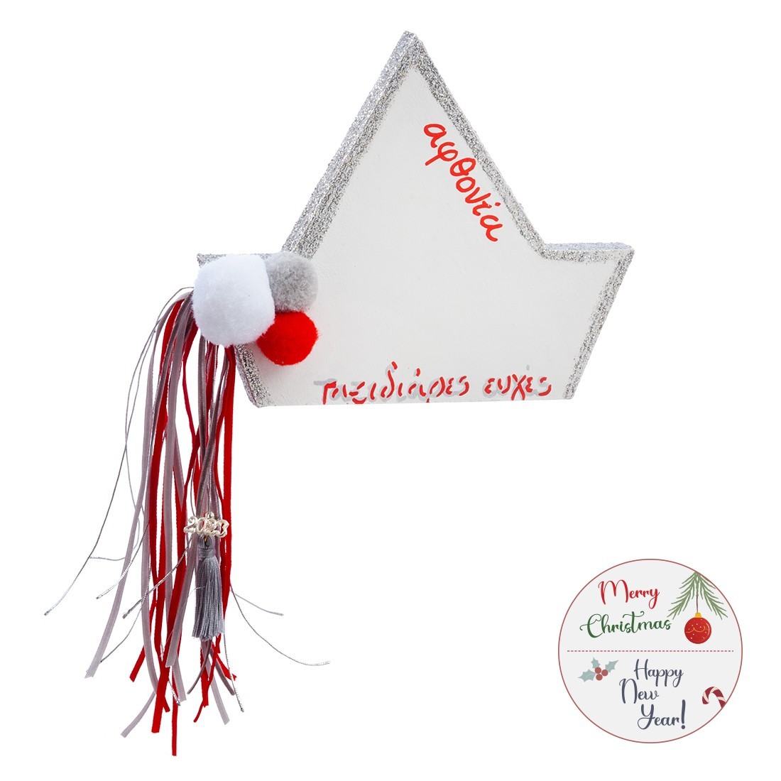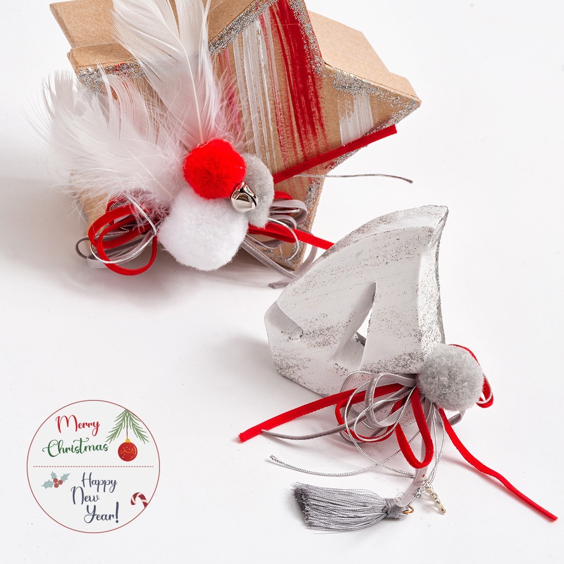 Χριστουγεννιάτικο σετ δώρου που περιλαμβάνει: α)τσιμεντένιο καραβάκι σε λευκό χρώμα με ασημί glitter σβησίματα και β)χάρτινο κουτί σε σχήμα αστεριού.
