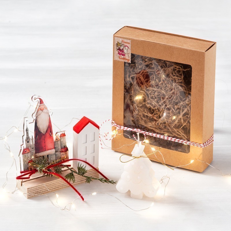 Χριστουγεννιάτικο σετ δώρου. Το δώρο αποτελείται από plexiglass print παράσταση σε ξύλινη βάση,Χριστουγεννιάτικο αρωματικό κερί, γύψινο σπιτάκι και φωτάκια led.Στην τιμή περιλαμβάνεται το χάρτινο κουτί δώρου.