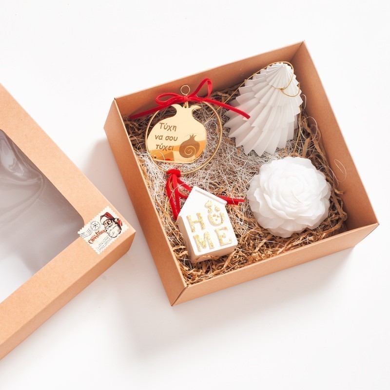 Χριστουγεννιάτικο σετ δώρου. Το δώρο αποτελείται από : αρωματικό κερί,γύψινο καρυοθραύστη και στολισμένη κουβαρίστρα. Στην τιμή περιλαμβάνεται το χάρτινο κουτί δώρου.