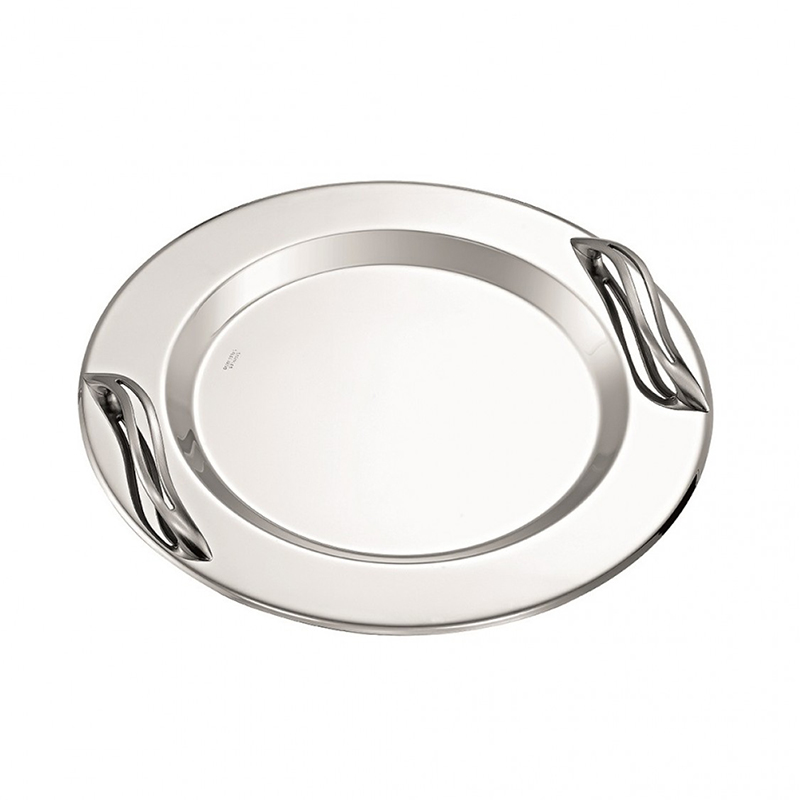 Δίσκος Γάμου Στρογγυλός Inox με Χερούλια Silver Swirl