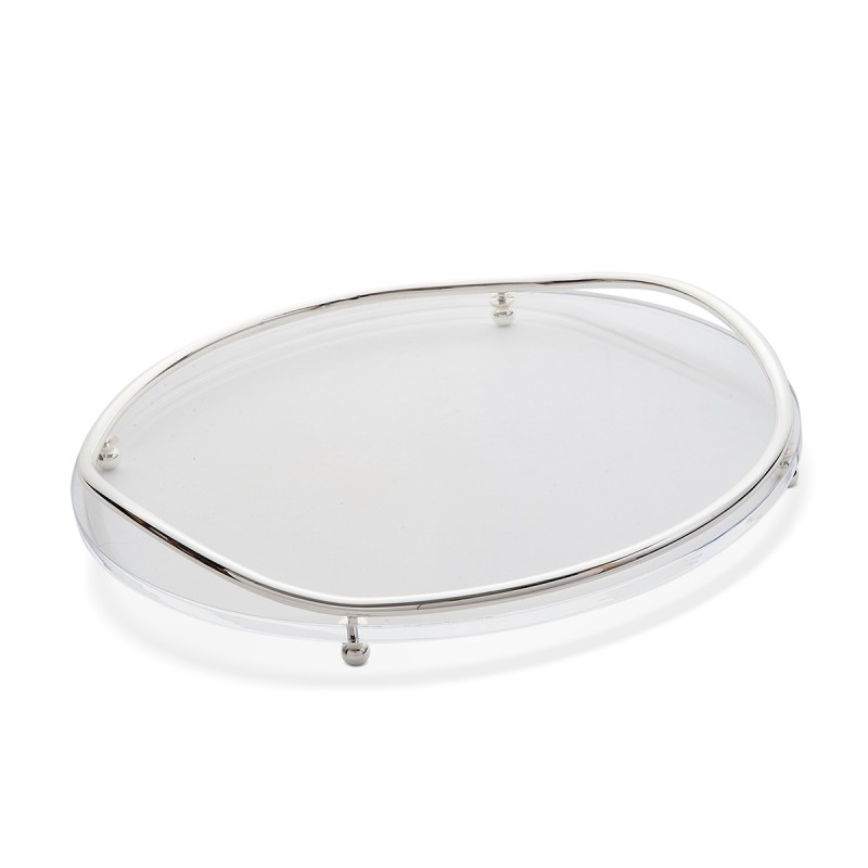 Επάργυρος δίσκος με ξύλινη βάση σε τεχνοτροπία μαρμάρου.