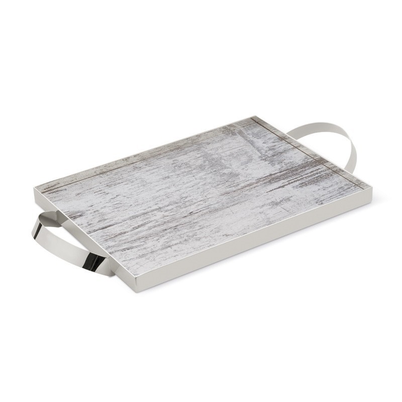 Δίσκος παραλληλόγραμμος επάργυρος με ξύλινη βάση και χέρια