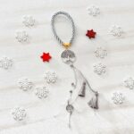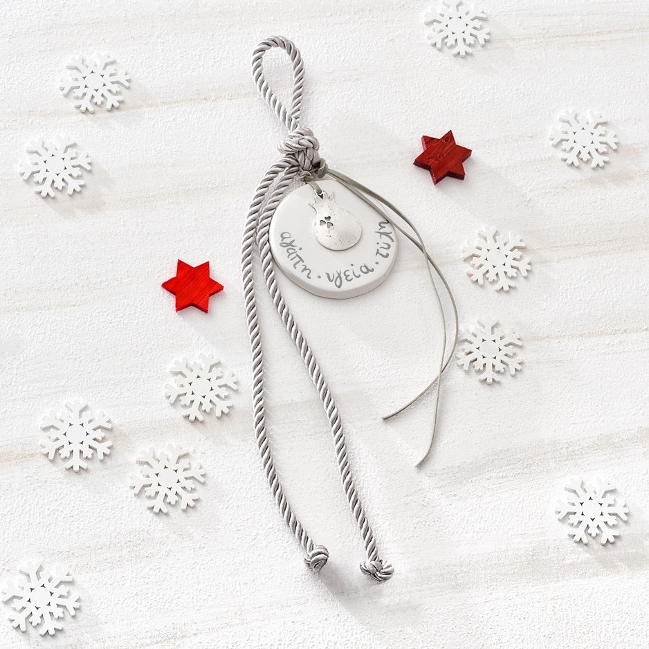 Χριστουγεννιάτικο κρεμαστό γούρι με μεταλλικό μοτίφ δέντρο της ζωής σε ασημί χρώμα και στολισμένο με rayon κορδόνι και φούντες σε γκρι χρώμα.