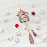 Χριστουγεννιάτικο κρεμαστό γούρι σπιτάκι σε ροζ και natural αποχρώσεις.
