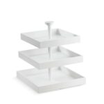 Ξύλινη λευκή τουρτιέρα τετράγωνη με καλάθια σε τρία επίπεδα ιδανική για διακοσμήσεις