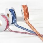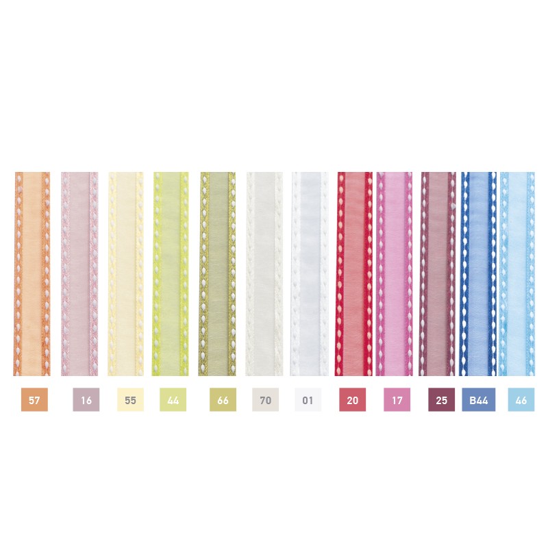 Κορδέλα οργάντζα με υφασμάτινο τελείωμα και λευκό γαζί, σε διάφορα χρώματα και φάρδος 1,5εκ.