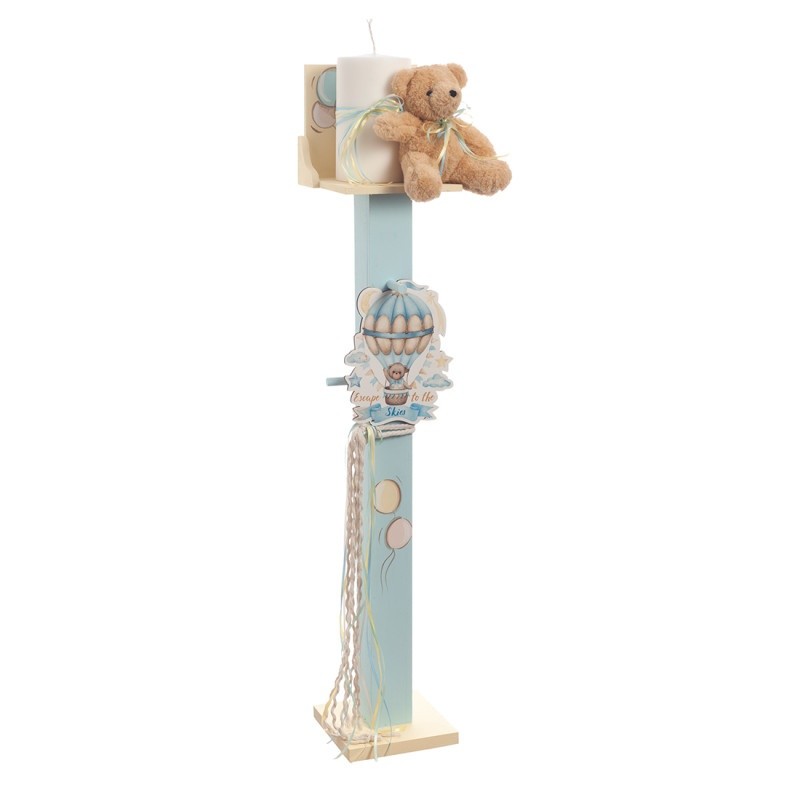 Σετ λαδικών με ξύλινο σομόν κουτί συσκευασίας για τα κεριά και ζωγραφισμένο με μπαλόνια. Ο κωδικός περιλαμβάνει στολισμένα 3 κεράκια, σαπούνι μέσα σε πουγκί και μπουκαλάκι λαδιού.