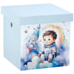 Κουτί Βάπτισης Κύβος με Θέμα Διάστημα