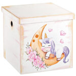Κουτί Βάπτισης Κύβος με Θέμα Unicorn