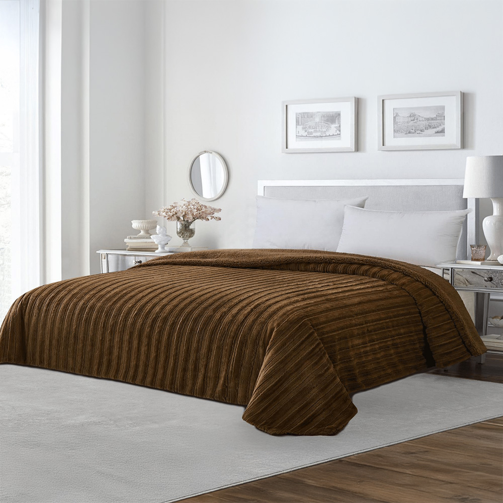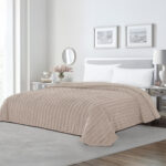 Κουβέρτα Fleece Υπέρδιπλη Με Γουνάκι (220×240) Rabbit Stripe Beige