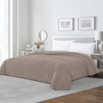 Κουβέρτα Fleece Υπέρδιπλη Με Γουνάκι (220×240) Rabbit Stripe Mocca