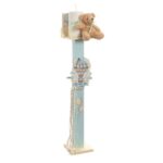 Ξύλινος κηροστάτης κρεμάστρα σε σιέλ και κίτρινο χρώμα. Είναι διακοσμημένος με ξύλινο κοπτικό αερόστατο και λούτρινο αρκουδάκι. Στην τιμή περιλαμβάνεται και το κερί για την εκκλησία.