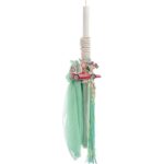 Λαμπάδα βάπτισης ντυμένη με βαμβακερό κορδόνι και στολισμένη με βεραμάν γάζα. Η λαμπάδα είναι διακοσμημένη με ξύλινη παράσταση που απεικονίζει την καμηλοπάρδαλη να κατεβαίνει σε αγώνες φόρμουλας.