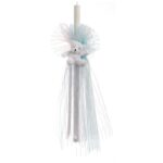 Λάμπαδα βάπτισης διακοσμημένη με χυτό ριγέ τούλι. Τα τούλια είναι σε σιέλ και ρόζ απόχρωση. Η διακόσμηση ολοκληρώνεται με λούτρινο λευκό αρκουδάκι.