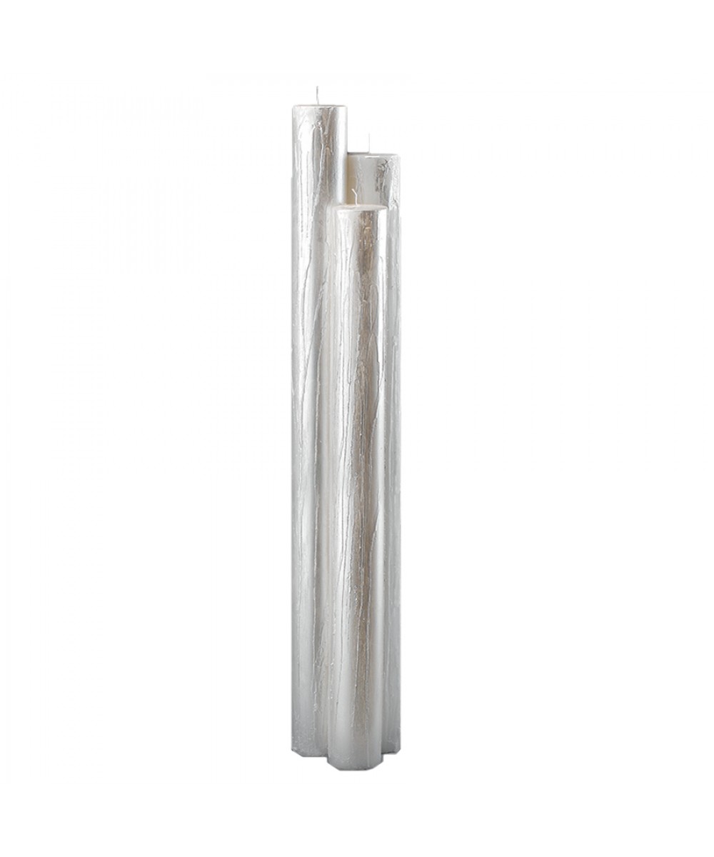 Λαμπάδες γάμου, σετ 3τμχ από ασύμμετρα κεριά με διάμετρο 10εκ. το κάθε ένα, σε ασημί χρώμα.