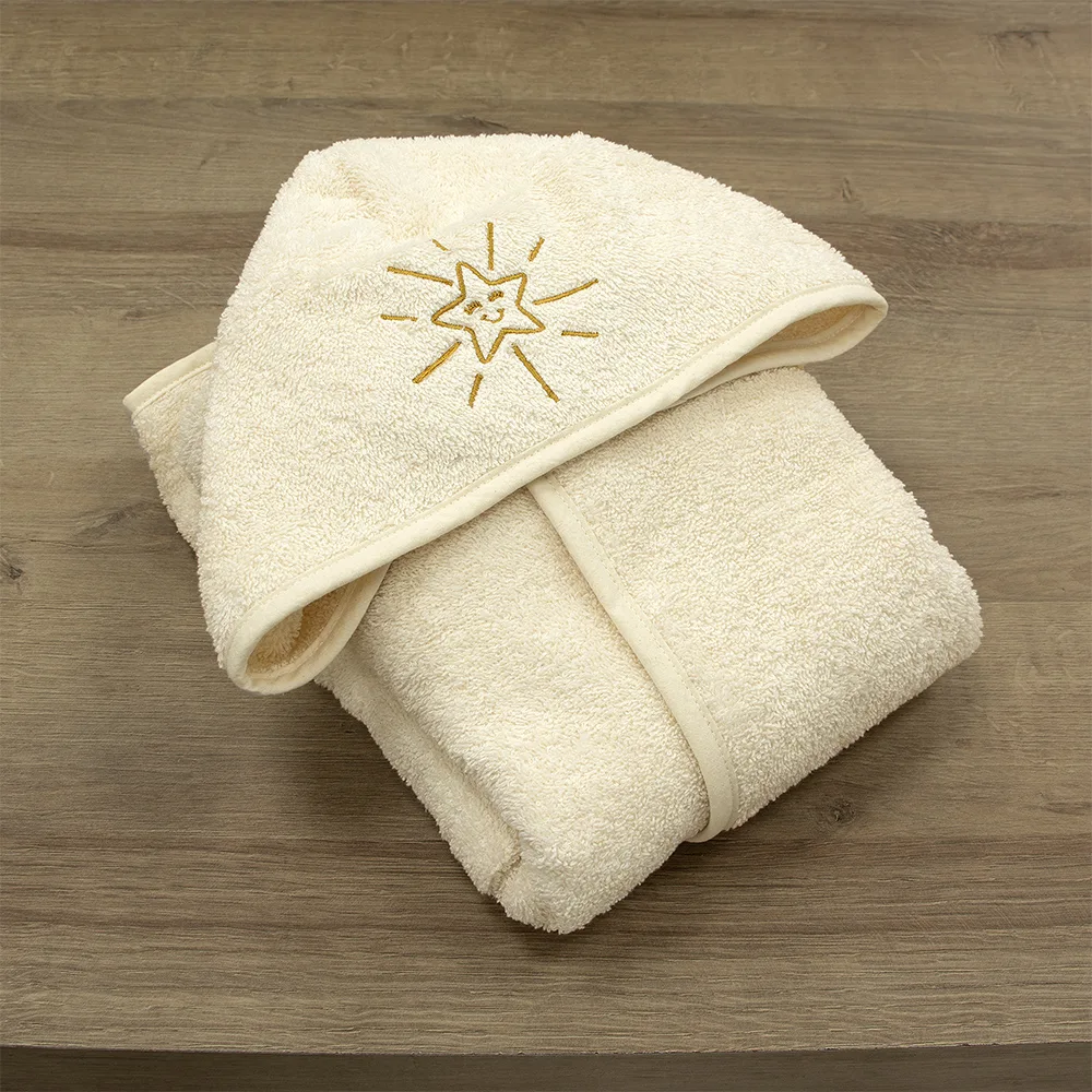 Μπουρνούζι Smiley Sun της εταιρείας Lino Home! Το μπουρνούζι  Smiley Sun είναι κατασκευασμένο από 100% βαμβάκι, βάρους 450gsm/m, σε ουδέτερη εκρού βάση. Διαθέτει κέντημα με γλυκιά παιδική φιγούρα στην κουκούλα του για να το λατρέψουν οι μικροί μας φίλοι! Το μπουρνούζι smiley sun είναι ιδανικό για καθημερινή χρήση, αφού συνδυάζει λειτουργικότητα και στυλ. Η συσκευασία περιέχει ένα μπουρνούζι ηλικίας 2-4.